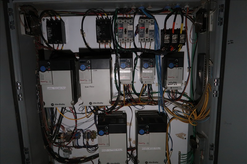 OPTIMIZED GANG EDGER, S/N:2840 W/(2) 350 HP/2,050 RPM ARBOR DRIVE MOTORS, RETEK #3 SPLINED ARBOR, 23-1/2" SAWS, CHROMED KNURLED FEED ROLLS, PRESS ROLLS, SPARE SAWS & GUIDES, LUBE SYSTEM, 2016 TMT FEED MODULE, TMT TEMPOSONIC POSITIONED CHIPPING HEADS W/KEY KNIFE CONVERSION, 20" FACE, (2) 150 HP/1,180 RPM MOTORS, 2016 TMT FEED MODULE, S/N:5394, JOE SCAN 20' TRANSVERSE SCANNING SYSTEM W/(16) JOE SCAN JS25WX SCAN HEADS, SCAN TRANSFER SYSTEM TO TEMPOSONIC POSITIONED INFEED TRANSFER/ROLLCASE, OUTFEED BELT TRANSFERS, BENSHAW & ALLEN BRADLEY STARTS ON ARBOR DRIVES & CHIPPING HEADS, ALLEN BRADLEY VFD'S & PLC, SICAM SYSTEM, SUPPORT INFEEDS & OUTFEEDS, CONTROLS, ELECTRICS & HYDRAULICS
