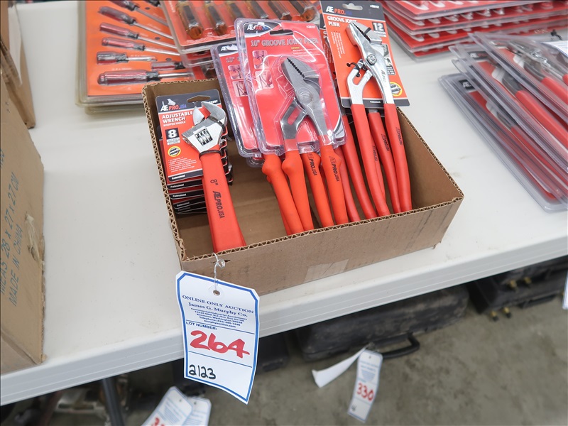 LOT, ASSORTED ATE PRO PLIERS & ADJUSTABLE WRENCHES