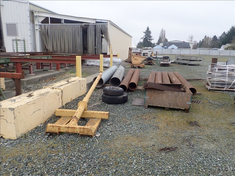 GROUP OF MISC. STEEL, SAW HORSES, FORKLIFT BOOM, PIPE & MISC.