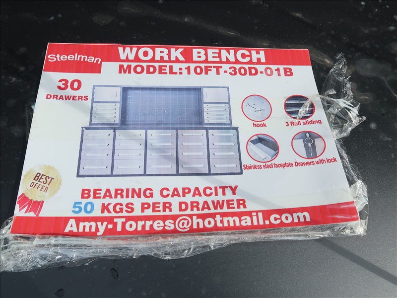 10' 30-DRAWER WORKBENCH, STAINLESS DRAWERS (UNUSED)
