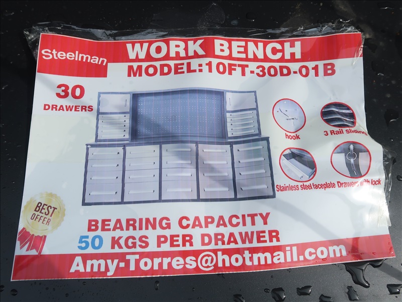10' 30-DRAWER WORKBENCH, STAINLESS DRAWERS (UNUSED)