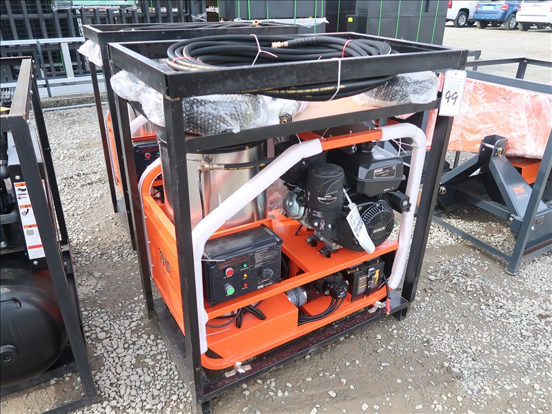 DIESEL FIRED HOT WATER PRESSURE WASHER W/KOHLER COMMAND PRO 14 HP GAS ENGINE, HOSE, WAND & CASTERS, 4,000 PSI (UNUSED)