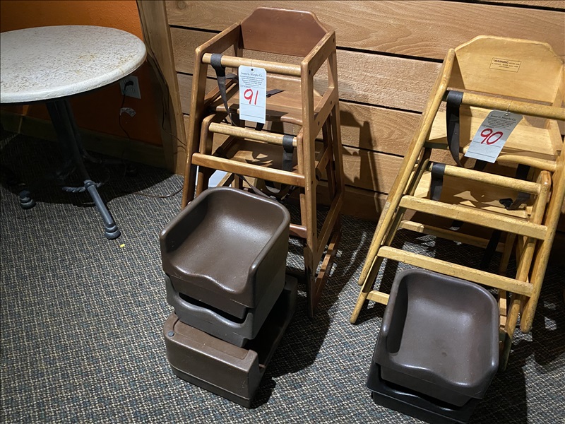LOT, (2) WOOD HIGHCHAIRS & (3) POLY BOOSTERS (IN BASEMENT)