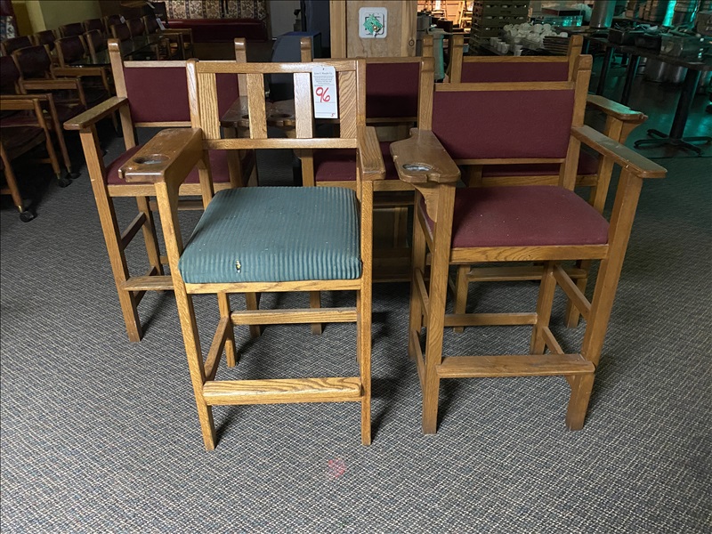 LOT, (5) ASSORTED WOOD BILLIARD CHAIRS (IN BASEMENT)
