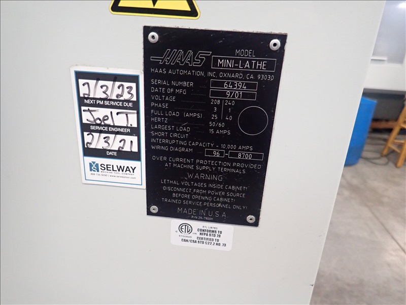 MINI-LATHE CNC LATHE, THRU SPINDLE, CONTROLS, S/N: 64394