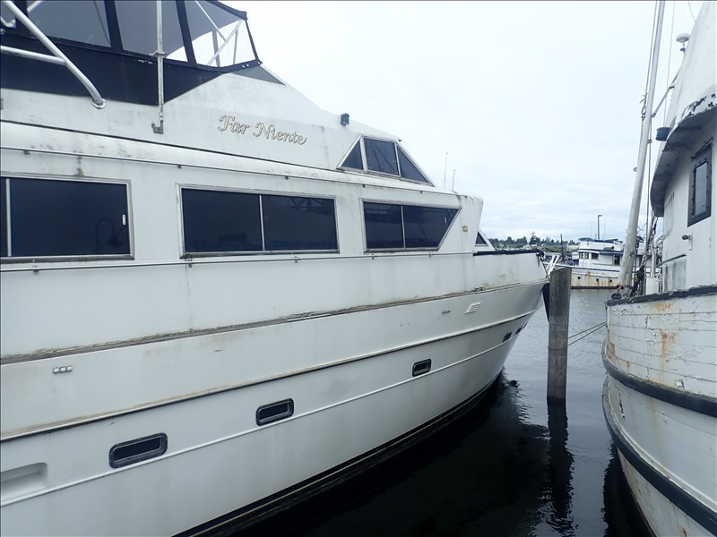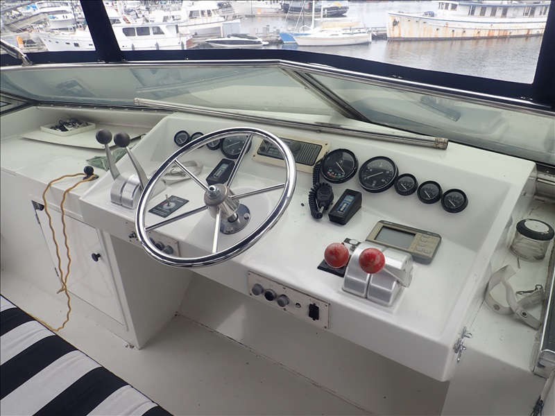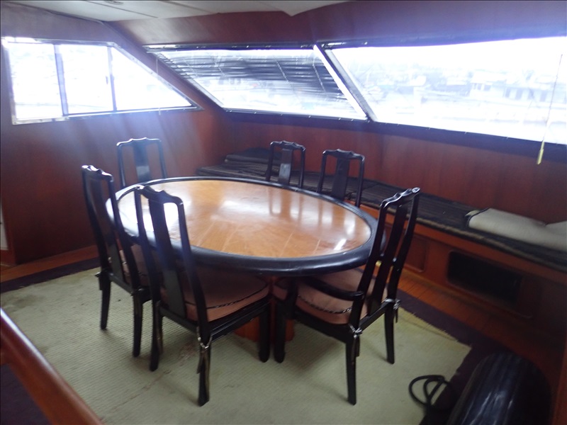 59' CRUISING YACHT AND A LIVE-A-BOARD, FIBERGLASS MODIFIED V-HULL, DESIGNED BY SPARKMAN & STEVENS OF N.Y, 1 OF 11 DESIGN HAVE BEEN CONSTRUCTED (FIBER-CLASS) WITH FORMAL DINING ROOM FORWARD OF THE PILOT HOUSE. THREE STATE ROOMS PLUS CREW QUARTERS (SLEEPS TEN). FOUR BATHROOMS AND SHOWERS AND A FULL SIZE JACUZZI IN THE MASTER STATEROOM WHICH HAS A QUEEN SIZED CUSTOM BED. TWIN DETROIT'S 8V92 TURBO CHARGED AT 735 HP, TWO KOHLER GENERATORS - 8KW & 20KW. 1,400 GALLON TANK.