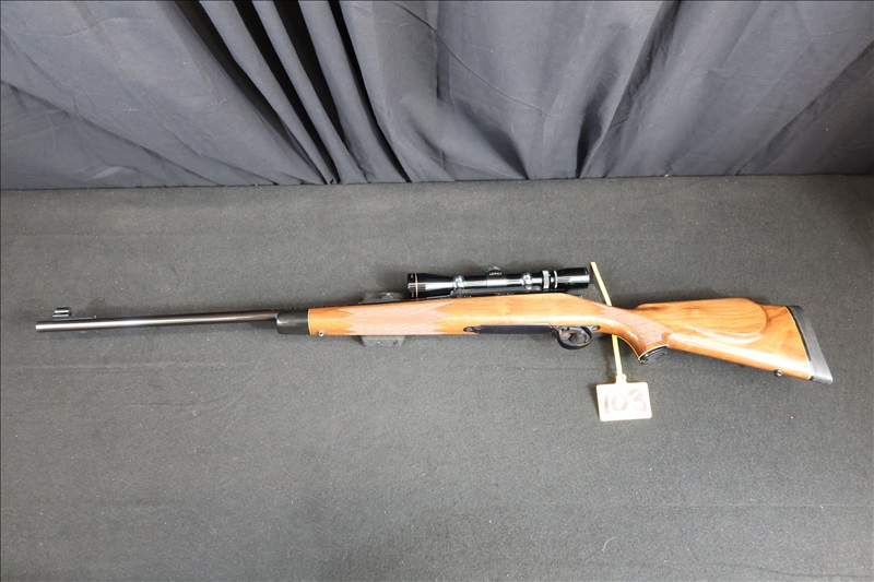 8MM REM MAG CAL, BOLT ACTION RIFLE W/LEUPOLD VARI-X 3-9 SCOPE