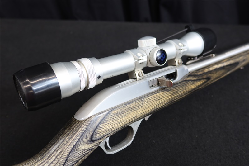 .22 L.R. CAL, STAINLESS BOLT ACTION RIFLE W/SYNTHETIC STOCK, & BUSHNELL 3X-9X32 SCOPE