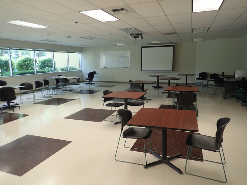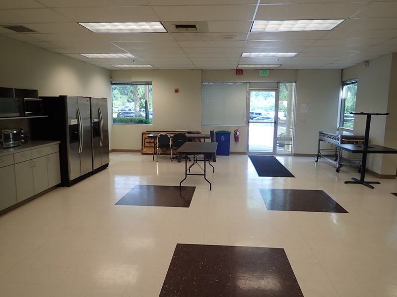 BREAK ROOM TO INCLUDE: (2) REFER/FREEZERS, BARBECUE, TABLES, CHAIRS, PROJECTOR & MISC.