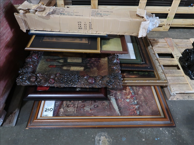 LOT, ASSORTED FRAMED ARTWORK & UMBRELLA ON THIS PALLET