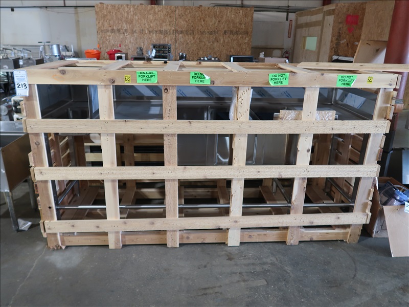 94" X 30" CUSTOM 4-COMPARTMENT SS SINK W/8" SPLASH GUARD (UNUSED)