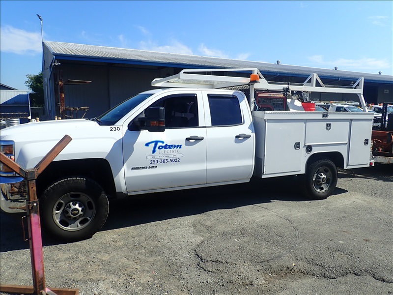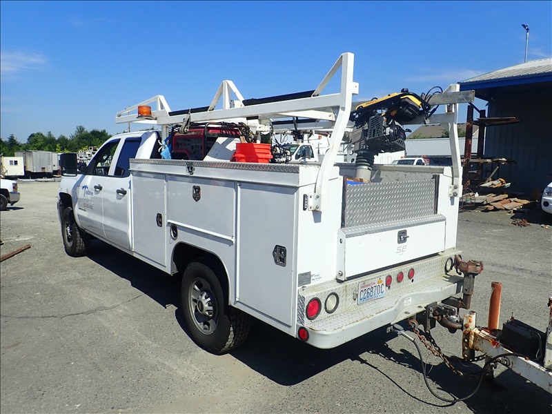 EXTENDED CAB SERVICE BODY TRUCK, V8, GAS, AUTO, 8' BED, RACK