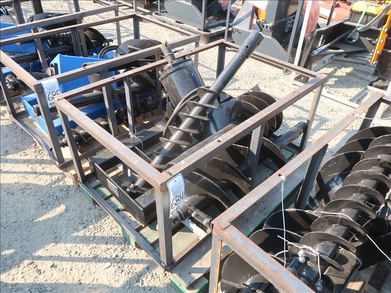SKID STEER HYDRAULIC AUGER POWER HEAD ATTACHMENT, (1) 14" X 48", (1) 12" X 48" & (1) 6" X 46" AUGER BITS (UNUSED)