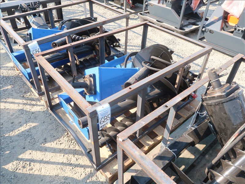 SKID STEER HYDRAULIC AUGER POWER HEAD ATTACHMENT, (1) 14" X 48", (1) 12" X 48" & (1) 6" X 46" AUGER BITS (UNUSED)