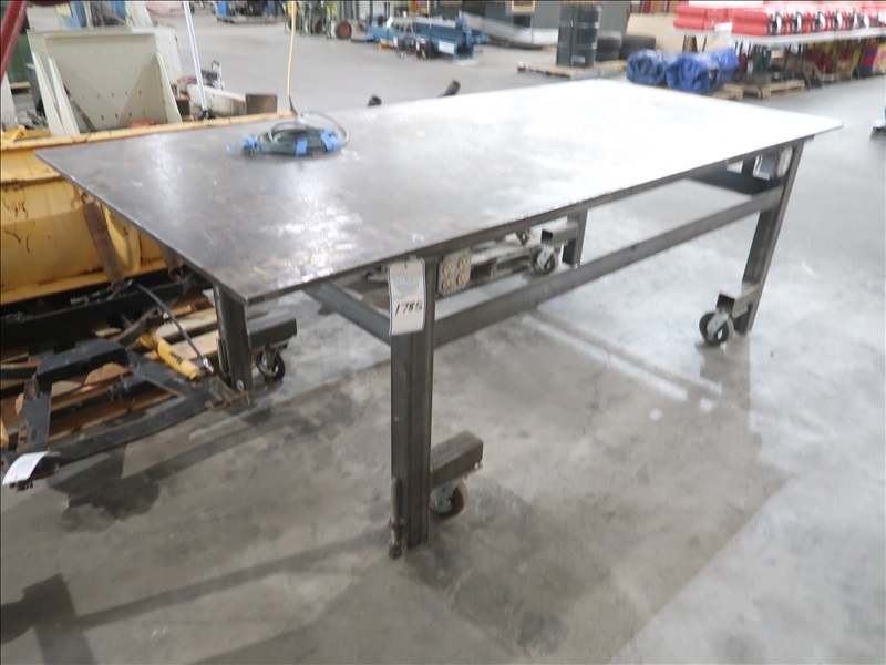 44-1/4"L X 96"W X 37"H STEEL TABLE ON CASTERS (WIRED FOR POWER)