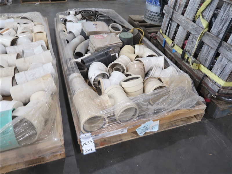 LOT, ASSORTED PVC PIPE COMPONENTS & PIPE PRESSURE TEST PLUGS ON THIS PALLET (MUST TAKE PALLET)