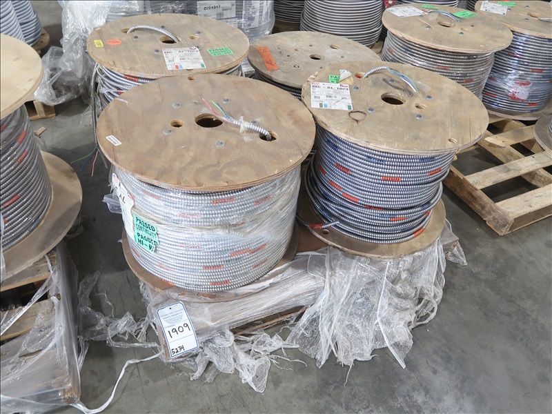LOT, (1) COMPLETE & (3) PARTIAL 1,000' SPOOLS OF ASSORTED METAL CLAD ELECTRICAL CABLE ON THIS PALLET