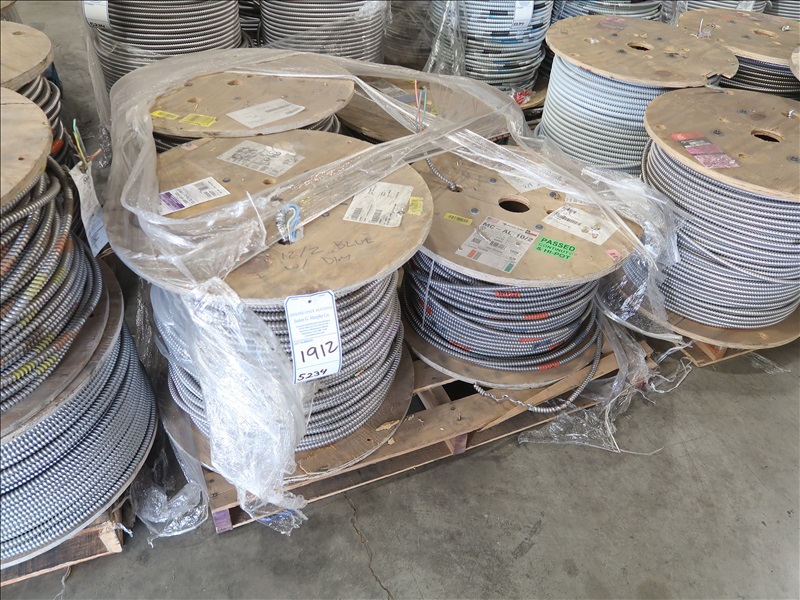 LOT, (4) PARTIAL SPOOLS OF ASSORTED METAL CLAD ELECTRICAL CABLE ON THIS PALLET