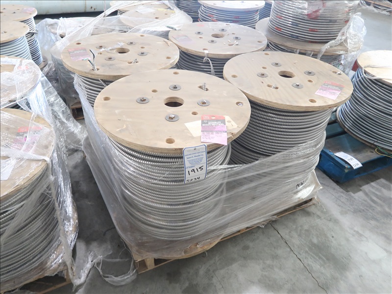 LOT, (4) PARTIAL SPOOLS OF SIZE 10/2, NEUTRALS 2X10, GROUNDS 1X10 METAL CLAD ELECTRICAL CABLE ON THIS PALLET