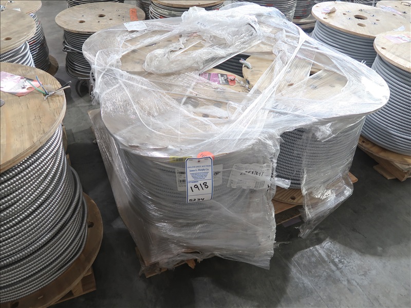 LOT, (4) PARTIAL SPOOLS OF SIZE 10/2, NEUTRALS 2X10, GROUNDS 1X10 METAL CLAD ELECTRICAL CABLE ON THIS PALLET