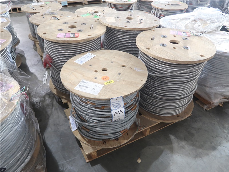 LOT, (4) PARTIAL SPOOLS OF ASSORTED METAL CLAD ELECTRICAL CABLE ON THIS PALLET