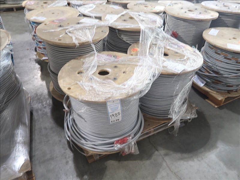 LOT, (4) PARTIAL SPOOLS OF SIZE 10/2, NEUTRALS 2X10, GROUNDS 1X10 METAL CLAD ELECTRICAL CABLE ON THIS PALLET