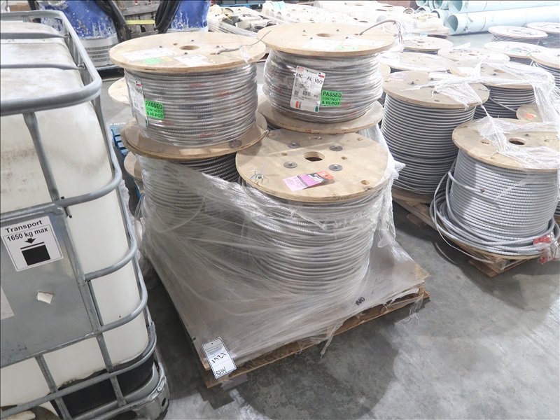 LOT, (2) 1,000' & (3) PARTIAL SPOOLS OF ASSORTED METAL CLAD ELECTRICAL CABLE ON THIS PALLET