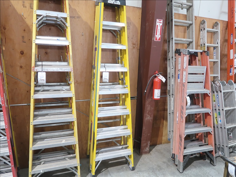 LOT, (2) ASSORTED 8' FIBERGLASS LADDERS