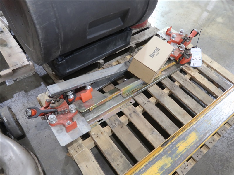 LOT, (4) BENCH CHAIN VISES W/BOX OF PARTS