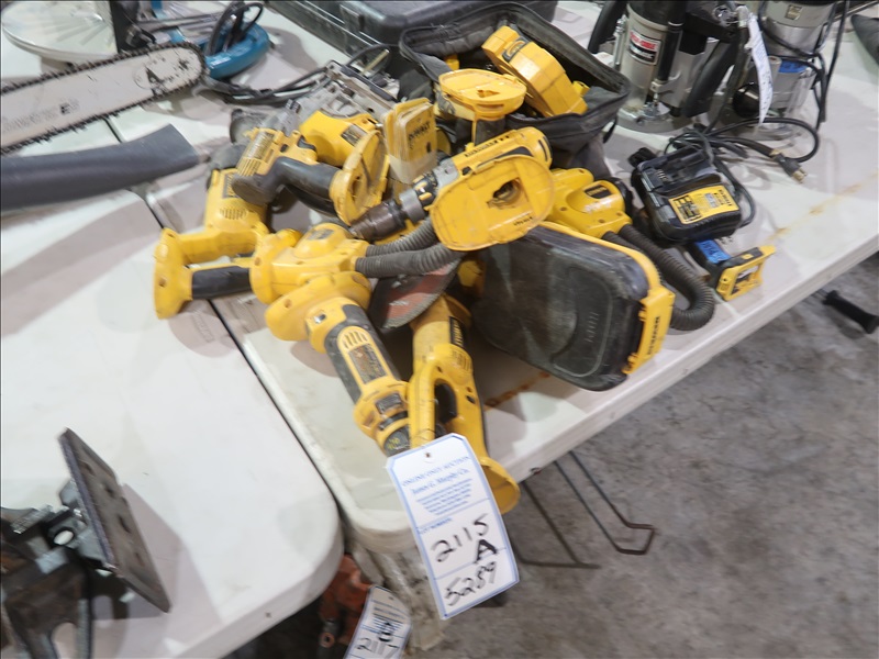 LOT, ASSORTED 18V TOOLS, (6) 18V BATTERIES (NO CHARGER) & (1) DCF885 20V 1/4" IMPACT DRIVER W/CHARGER (NO BATTERY)