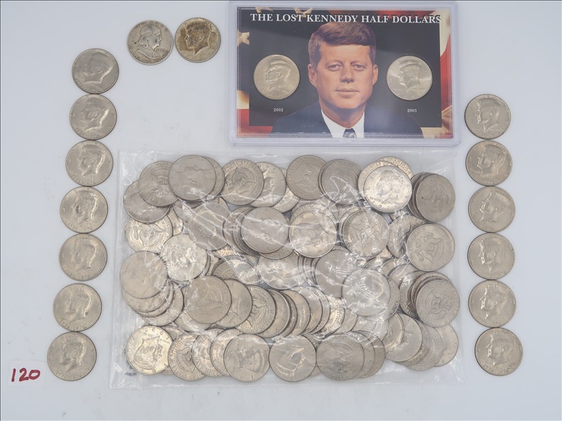 LOT, APPROX (1) FRANKLIN, (1) 1964 & PRIOR KENNEDY, & (117) KENNEDY HALF DOLLARS