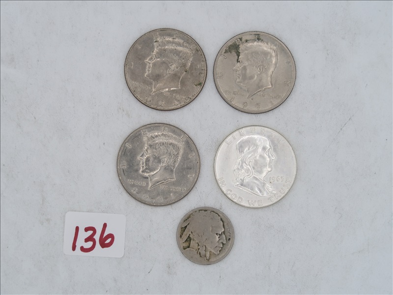 LOT, (1) FRANKLIN, & (3) KENNEDY HALF DOLLARS, & (1) BUFFALO NICKEL