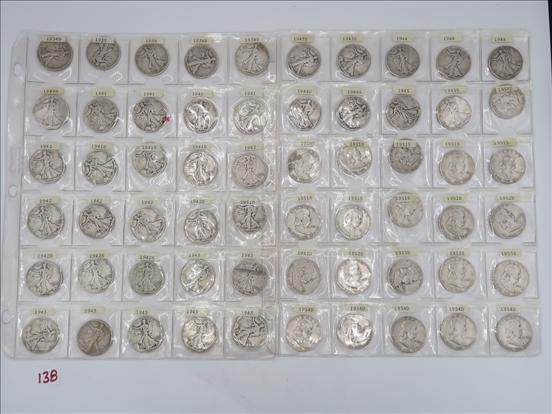 LOT, APPROX (39) LIBERTY WALKING, (79) FRANKLIN, & (51) KENNEDY HALF DOLLARS, & (1) STANDING LIBERTY QUARTER WITH ALBUM