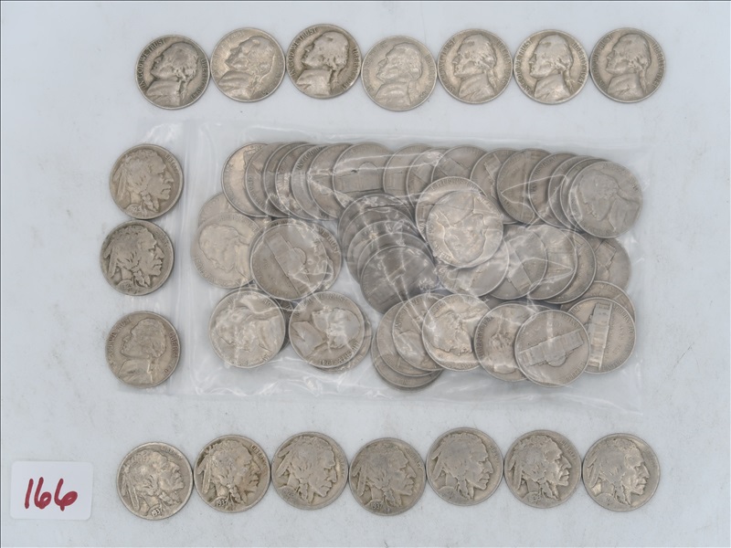 LOT, APPROX (9) BUFFALO, & (59) 1964 & PRIOR NICKELS