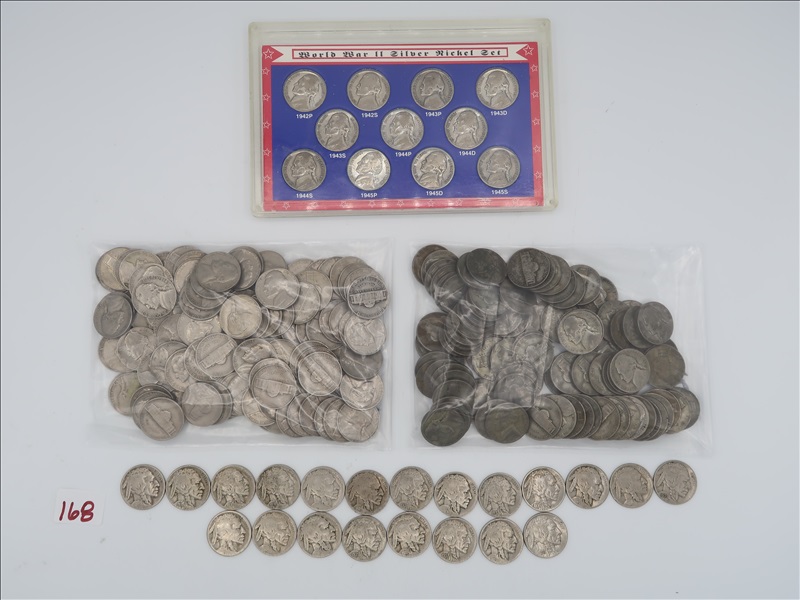 LOT, APPROX (1) WW2 (11) COIN SET, (11) BUFFALO, (103) WAR, & (104) 1964 & PRIOR NICKELS