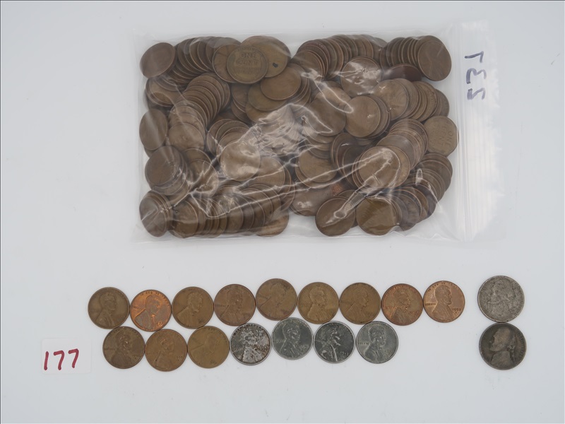 LOT, APPROX (2) WAR NICKELS, (237) WHEAT, & (4) STEEL PENNIES