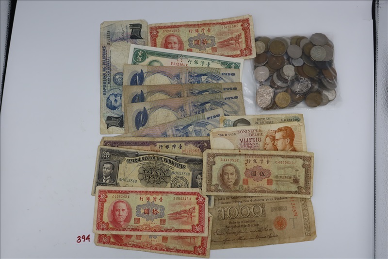 LOT, APPROX (149) FOREIGN COIN & (15) FOREIGN CURRENCY