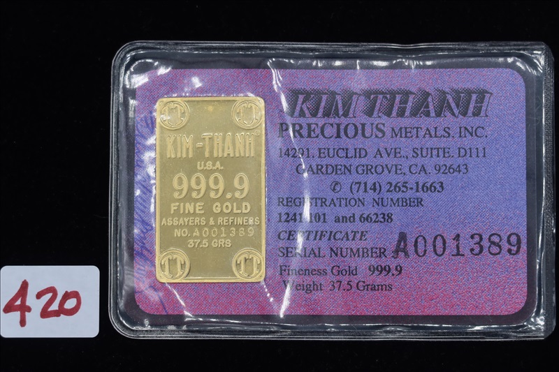LOT, (1) KIM THANH 37.5 GRAMS 999.9 GOLD BAR