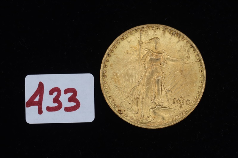 LOT, (1) 1916S $20 SAINT GAUDENS GOLD COIN
