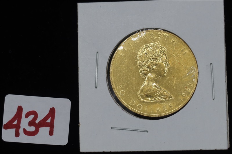 LOT, (1) 1982 $50 1 OZ .999 MAPLE LEAF GOLD COIN