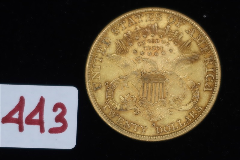 LOT, (1) 1896S $20 LIBERTY HEAD GOLD COIN