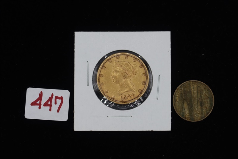 LOT, (1) 1897S $10 LIBERTY HEAD GOLD COIN & (1) 1916 BUFFALO PENNY