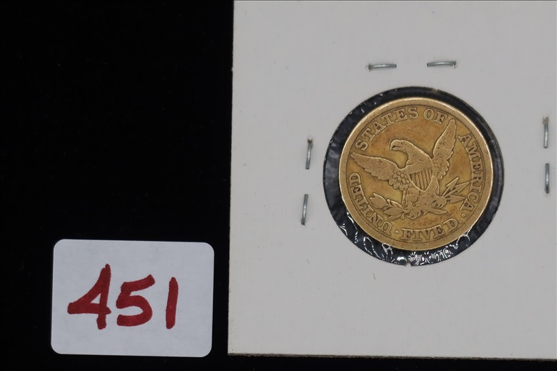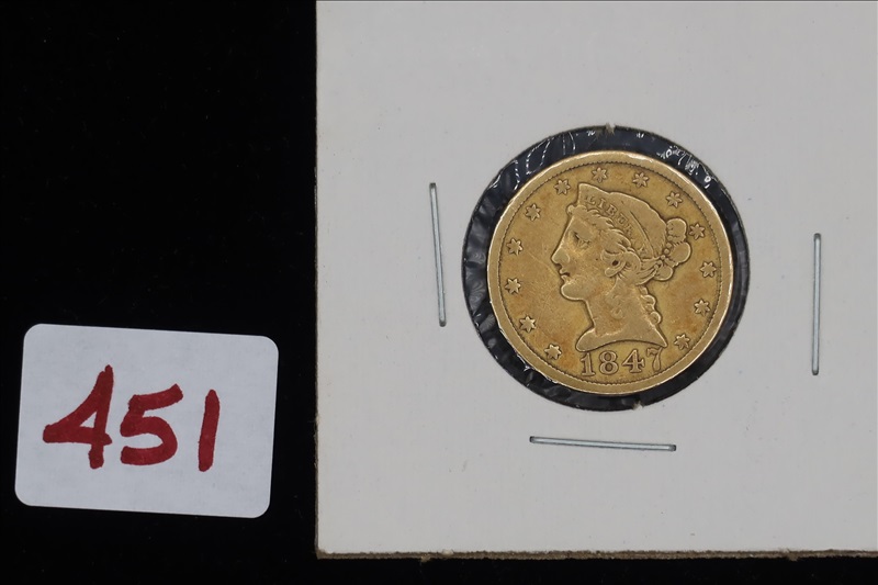 LOT, (1) 1847 $5 INDIAN HEAD GOLD COIN
