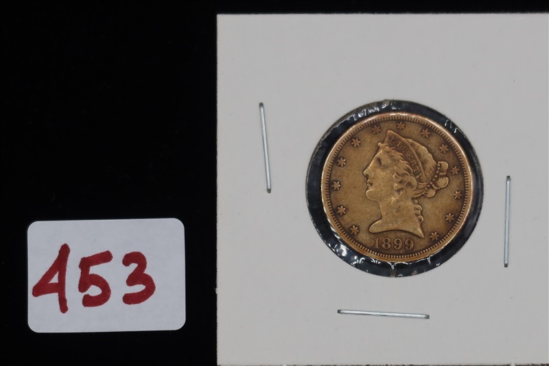 LOT, (1) 1899S $5 LIBERTY HEAD GOLD COIN