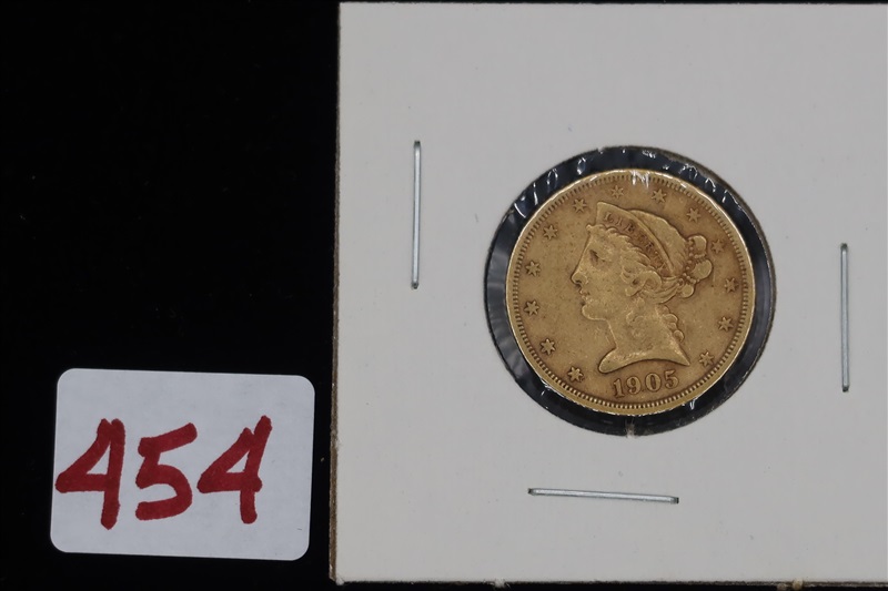 LOT, (1) 1905S $5 LIBERTY HEAD GOLD COIN