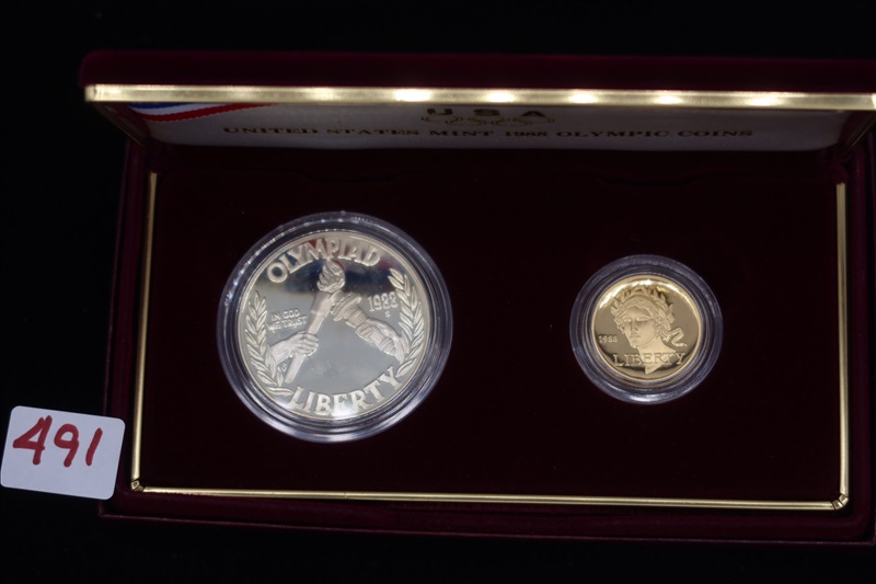LOT, (1) US MINT 1988 OLYMPIC COIN SET $5 GOLD & $1 SILVER