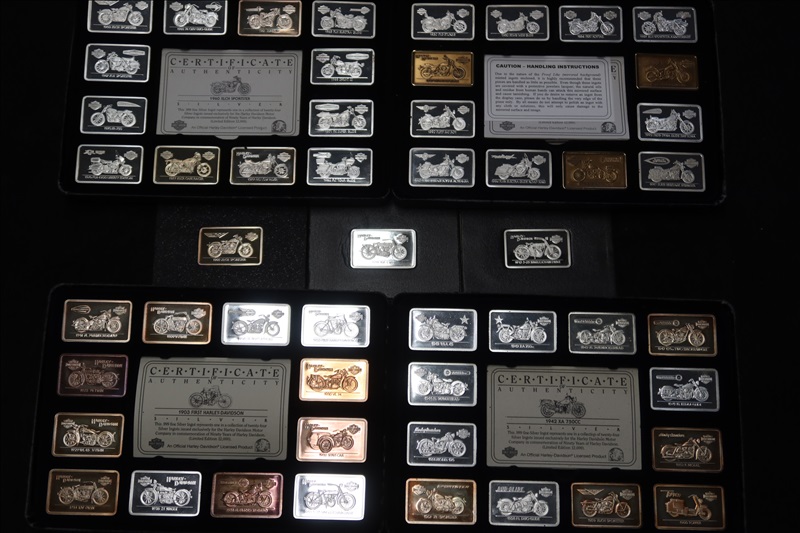LOT, APPROX (48) HARLEY DAVIDSON 90TH ANNIVERSARY SILVER INGOTS 1ST & 2ND EDITIONS WITH DISPLAY CASES (APPROX 67.2 OZ .999 SILVER