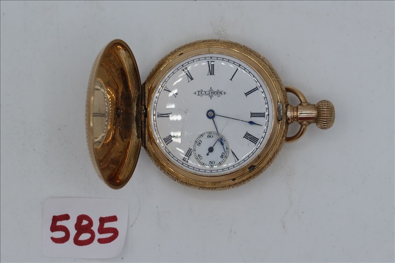 LOT, (1) ILLINOIS YELLOW METAL POCKET WATCH (CRYSTAL BROKEN)