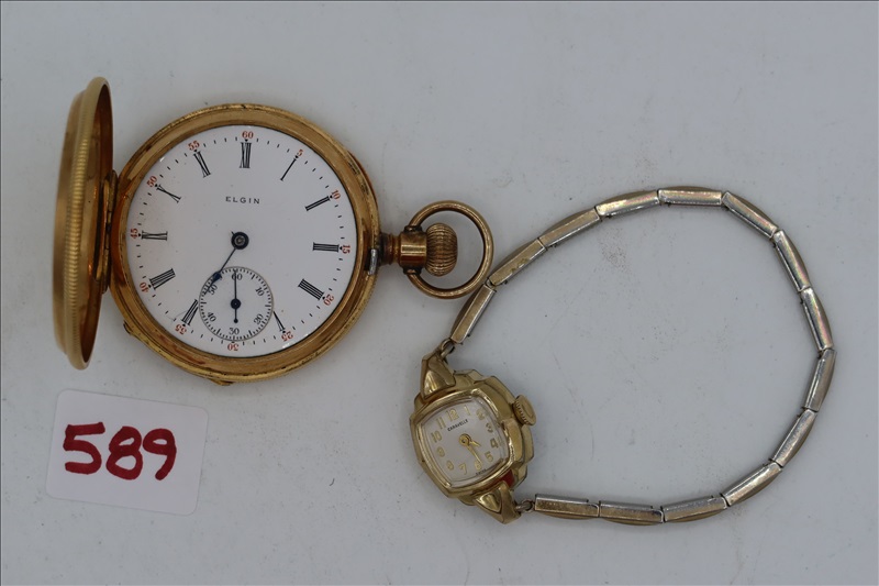 LOT, (1) ELGIN YELLOW METAL POCKET WATCH (NEEDS REPAIR) & (1) CARSVELLE YELLOW METAL WATCH (OPERATES)