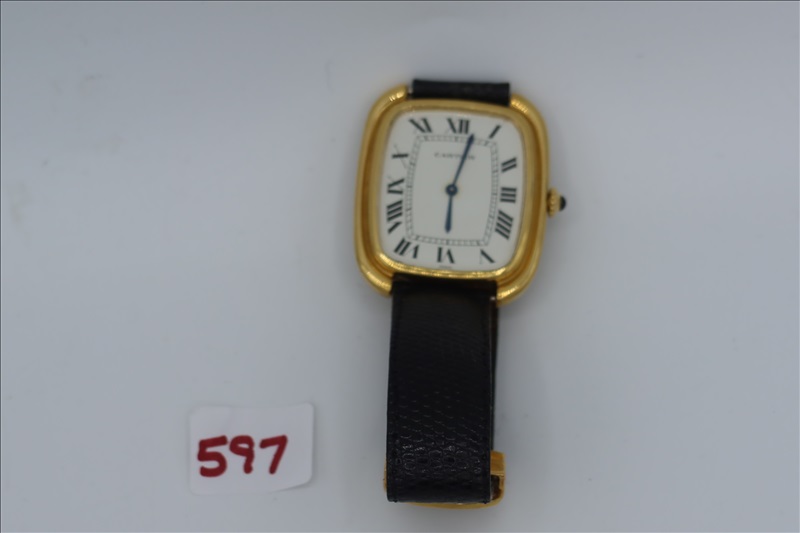 LOT, (1) CARTIER YELLOW METAL WATCH W/BLACK BAND